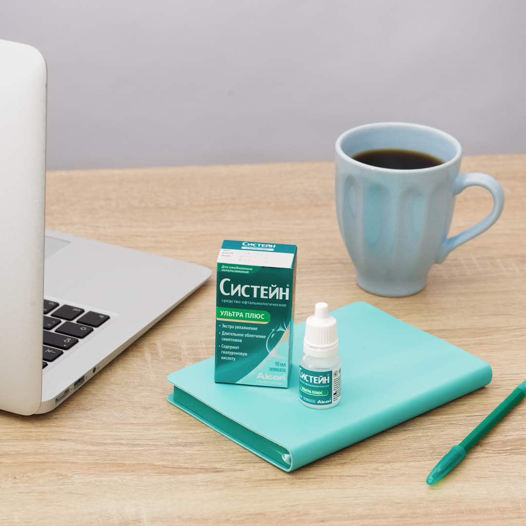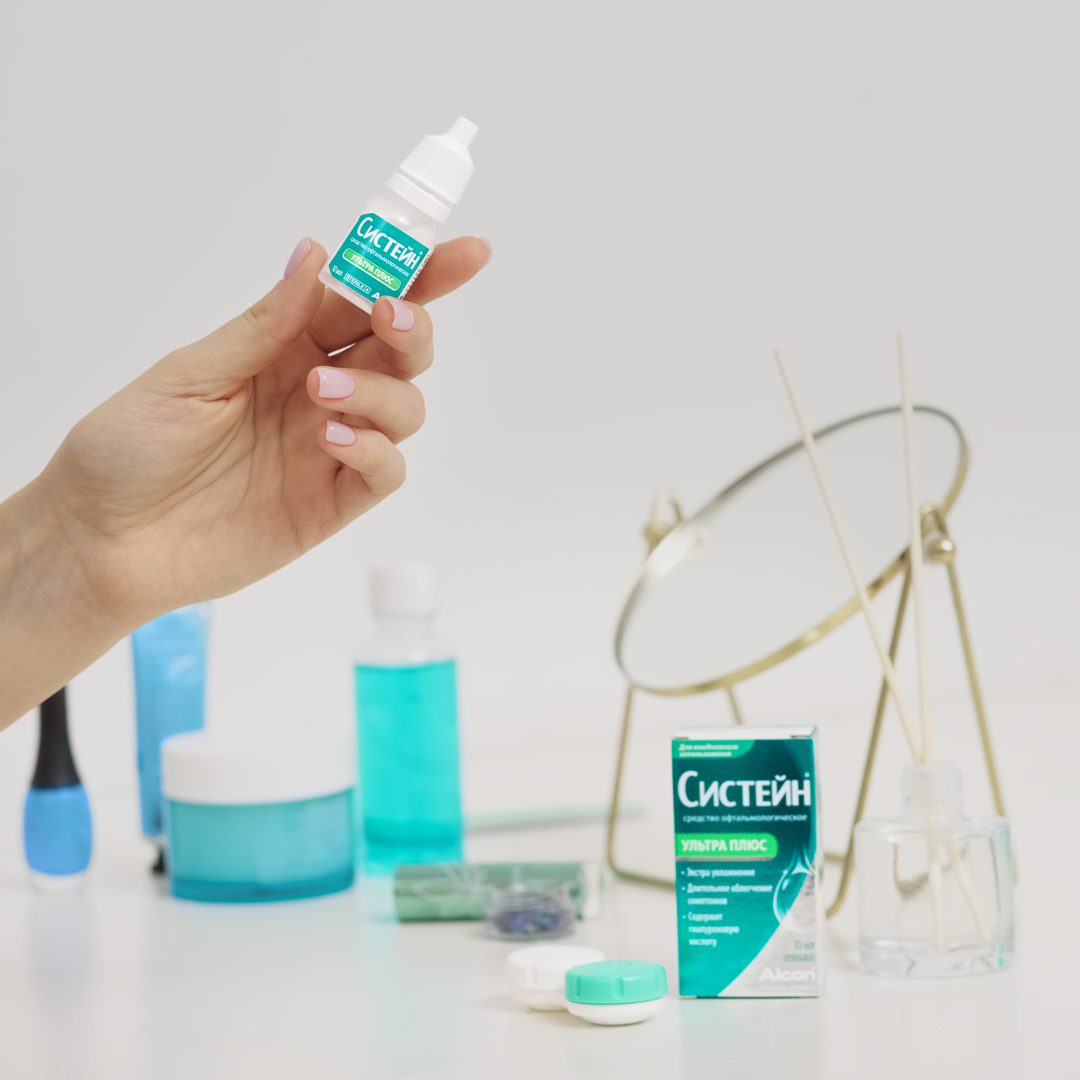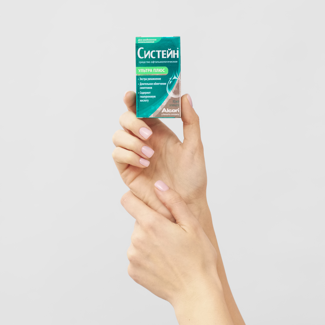 СИСТЕЙН УЛЬТРА ПЛЮС - система для комфорта глаз! Систейн® Ультра Плюс - экстра увлажнение глаз с гиалуроновой кислотой! Уникальная комбинация двух увлажняющих ингредиентов (гиалуроновой кислоты и гидроксипропилгуара): • Обеспечивает повышенное увлажнение и защиту глазной поверхности. • Более длительное удержание влаги в сравнении с глазными каплями, в составе которых присутствует только гиалуроновая кислота. • Можно капать на линзы, не снимая. ПОКАЗАНИЯ: - обеспечивает временное облегчение симптомов синдрома сухого глаза , таких как чувство жжения и раздражение: - может быть использовано для смазывания и увлажнения силикон-гидрогелевых и мягких (гидрофильных) контактных линз дневного и пролонгированного режимов ношения: - обеспечивает комфорт и предохраняет глаза от сухости, раздражения, чувства жжения, чувства инородного тела или песка, вызванные пылью, дымом, ультрафиолетовыми лучами, сухим жаром (радиатор, сауна), кондиционером, ветром, косметикой, мерцанием длительно работающего телевизора или мон